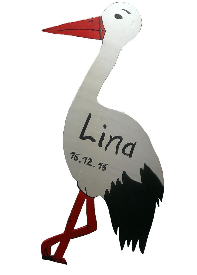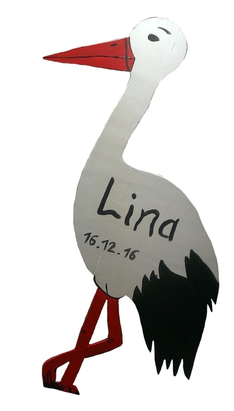 Tipp : Bei der Wahl der Farbe könnt ihr gerne eine bunte Farbmischung machen. Bunt ist immer gut. Aber in diesem Fall würde ich eher zu schwarz tendieren. Sieht harmonischer mit dem Storch aus und man sieht den Namen auch von weiter Weg.